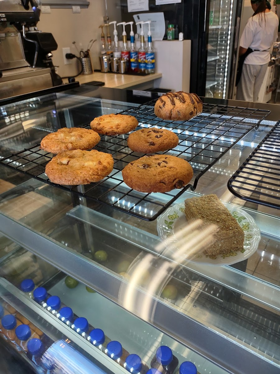 Cute place with delicious food and drinks. The staff is friendly and it is convenient to park in the free parking lot. I loved the sage green decor because it felt very cozy and calming. Their logo with three little beans wearing sunglasses is also very cute. The strawberry orange lemonade is sweet with a bit of tang. My toddler loved it. I liked how the chocolate chip cookies are nut-free for those with nut allergies. The iced matcha latte was refreshing with the right amount of matcha. I don’t like it when there is too much and it tastes bitter. The mirrored signboard outside was a cute touch, and my kiddo had fun checking out her reflection. :)